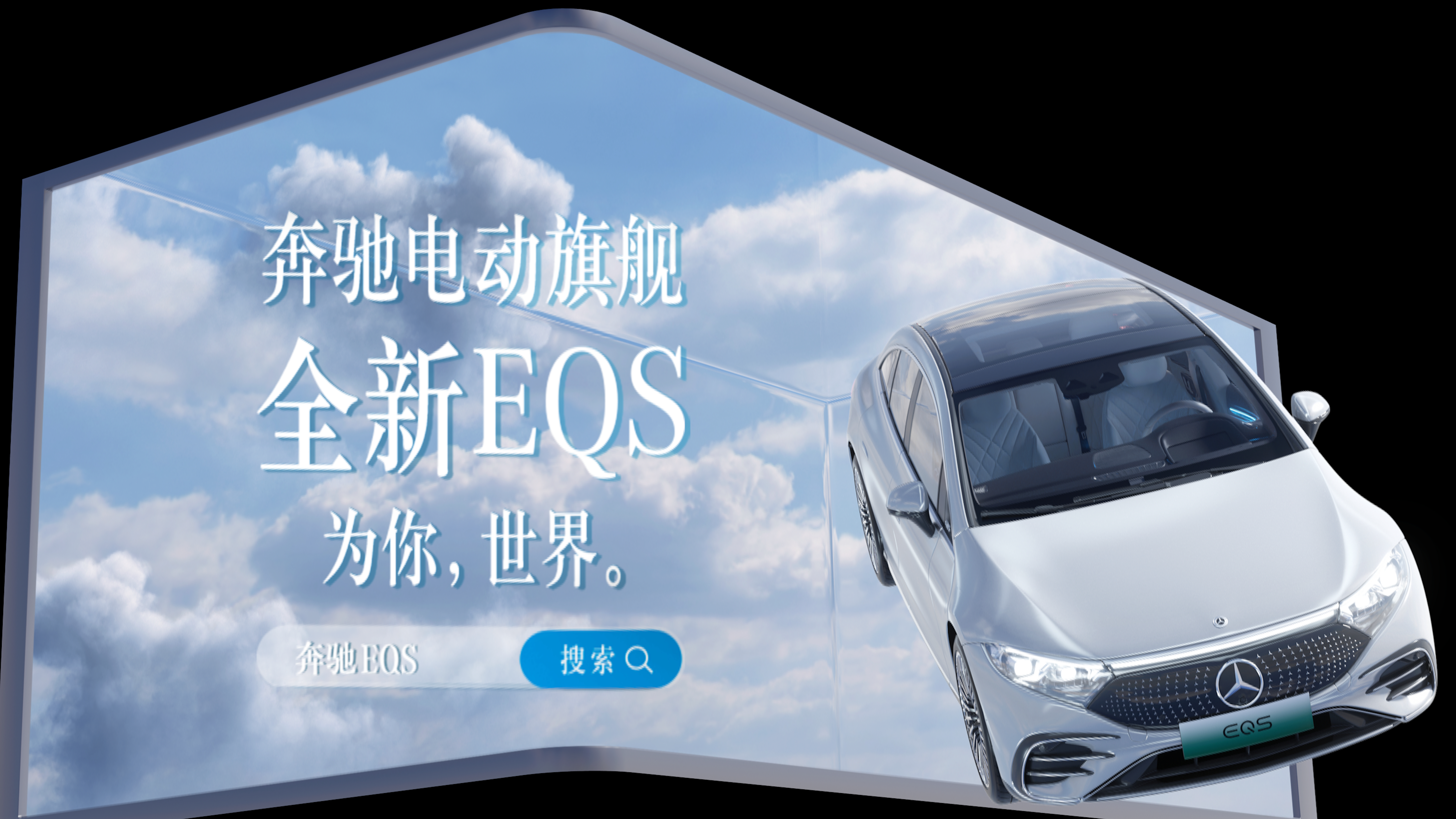 奔驰EQS打造超梦幻视觉盛宴,EQS中控台冲出裸眼3D屏,完美展示车身全貌|成都